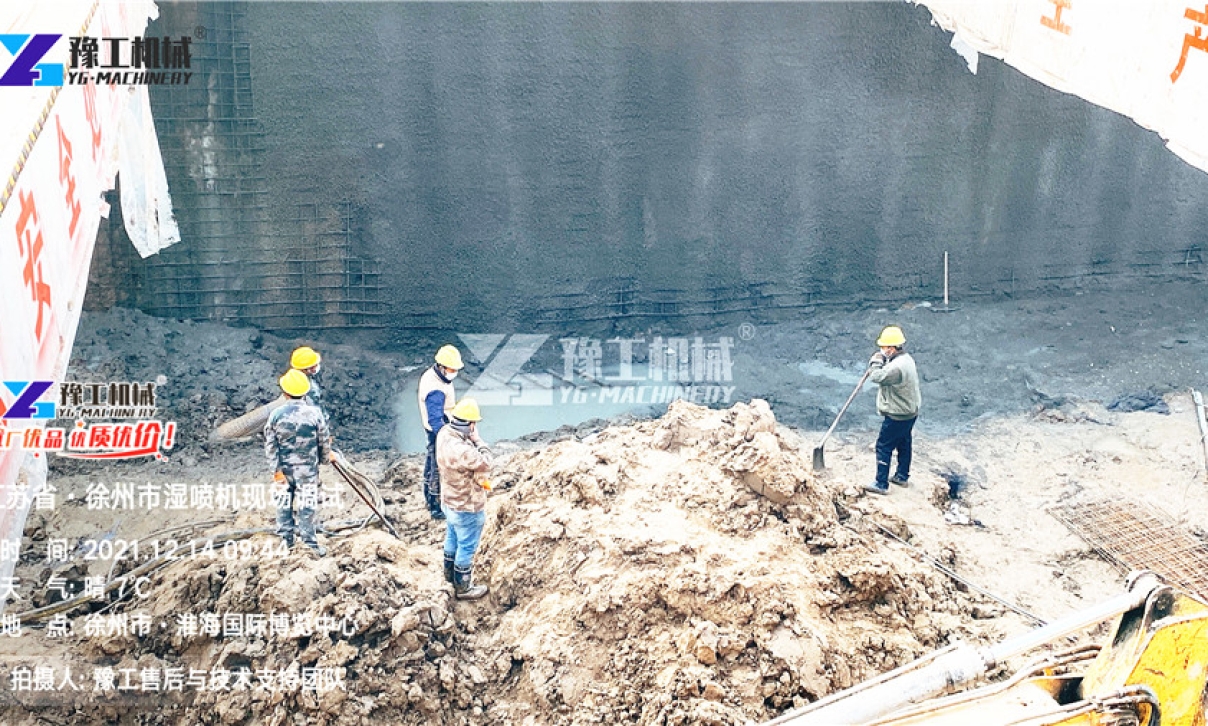 徐州奧體中心地鐵站項(xiàng)目,由中鐵十八局承建,此次訂購(gòu)的液壓濕噴機(jī)主要用于地鐵基坑支護(hù)施工??蛻糁坝嗁?gòu)的轉(zhuǎn)子式噴漿機(jī),因?yàn)楣と朔答佉恢庇卸鹿墁F(xiàn)象,影響工期,不得已重新訂購(gòu)!為保證客戶工期不誤,工廠安排物流發(fā)專車連夜為客戶送貨。在與發(fā)貨部確認(rèn)設(shè)備到達(dá)的時(shí)間后,豫工售后與技術(shù)支持部工程師喬工乘高鐵從鄭州出發(fā),在設(shè)備送抵工地的第一時(shí)間趕到客戶工地——徐州中鐵十八局奧體中心地鐵站施工現(xiàn)場(chǎng)。作為對(duì)風(fēng)量、混凝土漿料要求很高的設(shè)備,試機(jī)過(guò)程中,液壓濕噴機(jī)采用骨料粒徑15mm,混凝土塌落度150-180的混凝土漿料,配合16/10型空壓機(jī),設(shè)備水平輸送距離輕松達(dá)到80米,垂直噴射距離達(dá)到50米,生產(chǎn)能力每小時(shí)7立方。
