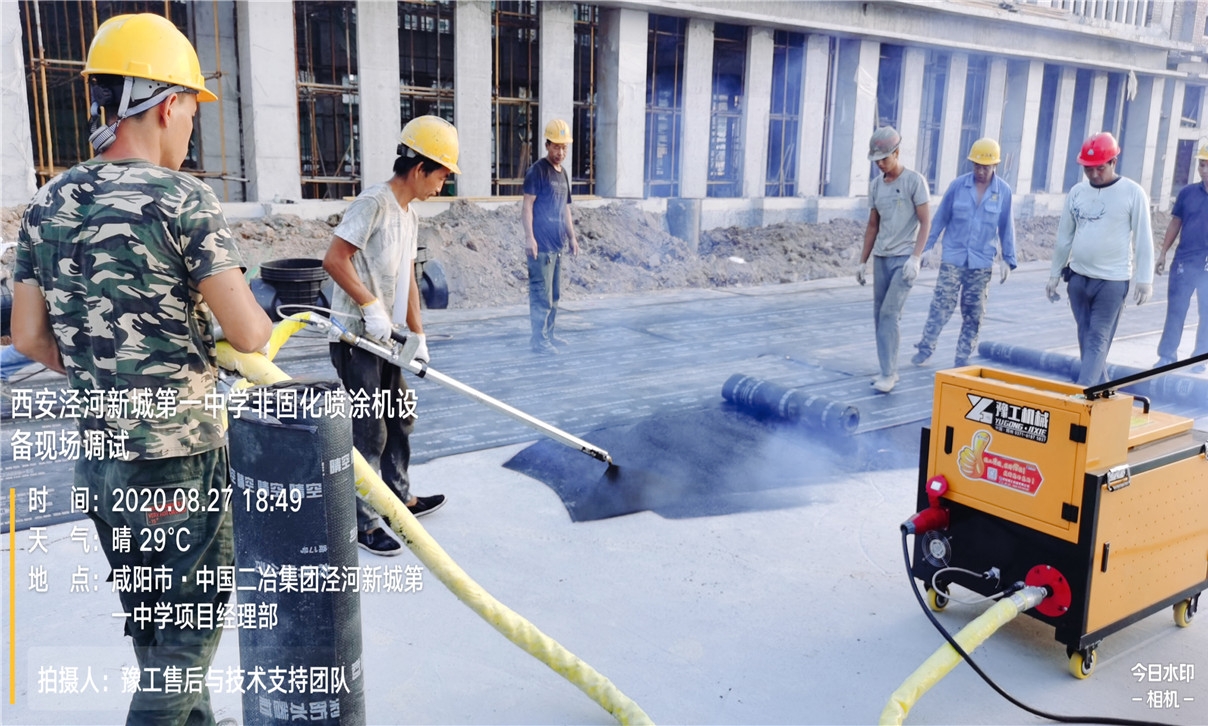 客戶負責某中學樓頂防水項目,施工面積76000平。 2020年4月,羅先生第一次咨詢豫工非固化噴涂機,經(jīng)過4個月的詢價和廠家對比,8月,羅先生提出想看現(xiàn)場施工效果,工作人員安排羅先生到駐馬店,豫工防水施工客戶工地,就近考察。 8月26日,客戶動身到豫工防水施工設備套裝客戶駐馬店泌陽工地考察。在那里,客戶看到了非固化噴涂機在路面拋丸機的協(xié)同配合下,高效施工,方便快捷,了解到豫工設備操作簡便、品質(zhì)穩(wěn)定,聽到了豫工服務專業(yè)周到、用心負責,心里更加踏實。羅先生考察回來的第二天,即爽快地與公司簽訂購買合同 試機過程中,施工效果與駐馬店工地效果一模一樣,非固化噴涂機在溶膠機和拖桶器的配合下,高效均勻噴涂,所有設備密切配合,火力全開,預計一天可完成防水施工面積2000平。