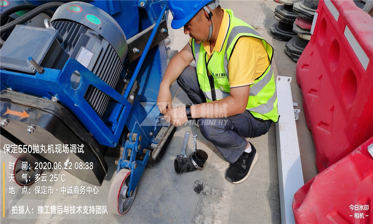 河北市政水泥道路拋丸工程,因?yàn)楣て诰o急,對(duì)路面拋丸機(jī)工作效率和能否滿足施工要求非常重視??蛻艄と舜蠖嗄赀^(guò)六旬,溝通有一定難度,豫工售后人員憑借專業(yè)技術(shù)水平,使工人盡快熟練操作設(shè)備操作步驟,解決客戶后顧之憂。2020年6月21日星期日,正在休息的毛工接到豫工售后與技術(shù)支持部的工作通知,河北保定客戶購(gòu)買550型路面拋丸機(jī),因?yàn)楣て诰o急,必須盡快趕赴客戶工地安裝調(diào)試。到達(dá)工地后,毛工第一時(shí)間投入設(shè)備的安裝調(diào)試工作中去。 因?yàn)榭蛻艄さ毓と舜蠖嗄赀^(guò)六旬,增加了工作溝通和設(shè)備培訓(xùn)的難度。毛工耐心指導(dǎo),不斷重復(fù)培訓(xùn)工人操作步驟和注意事項(xiàng),直到工人熟練掌握,才放心離開!